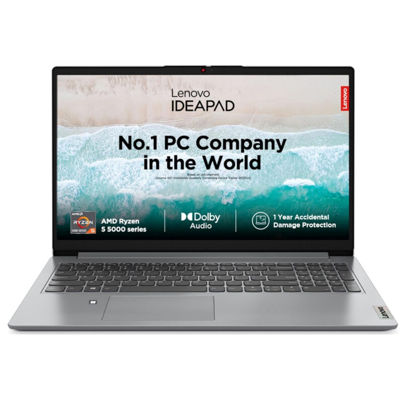 Lenovo IdeaPad Slim 1 AMD Ryzen 5 5500U 15.6″ HD Thin and Light Laptop (8GB/512GB SSD/Windows 11 Home/Office Home 2024/1 Year ADP Free/Grey/1.6Kg), 82R4011MIN