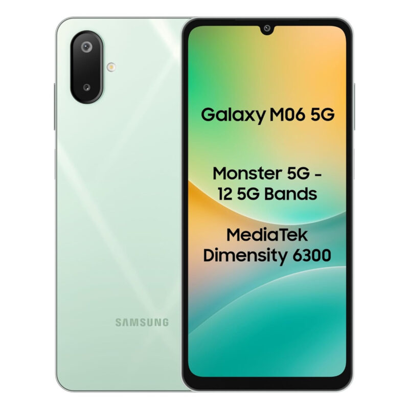 ₹58,390.00Original price was: ₹58,390.00.₹31,990.00Current price is: ₹31,990.00.Samsung Galaxy M06 5G (Sage Green, 4GB RAM, 64GB Storage) | MediaTek Dimensity 6300 | AnTuTu Score 422K+ | 12 5G Bands| 25W Fast Charging | 4 Gen of OS Upgrades | Without Charger