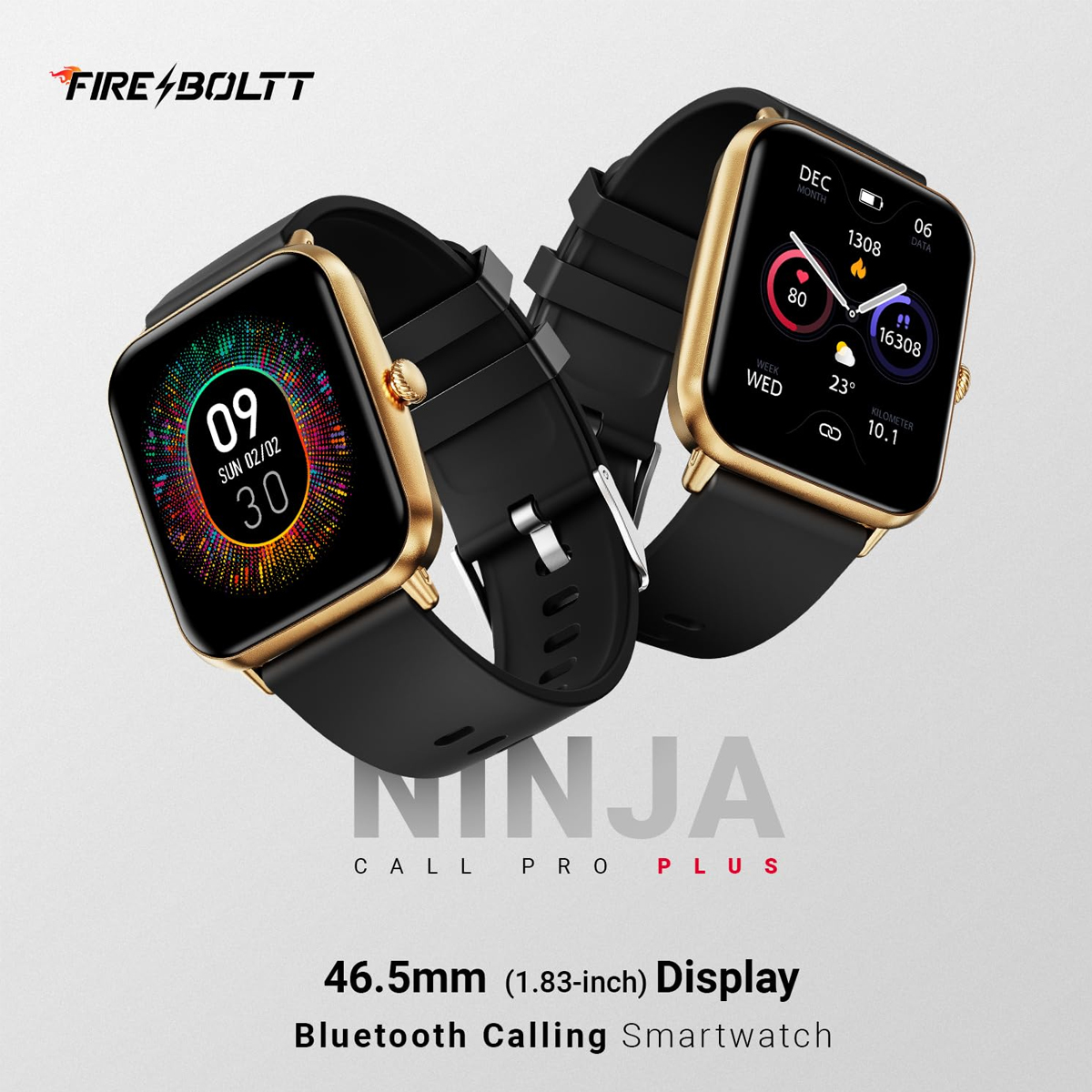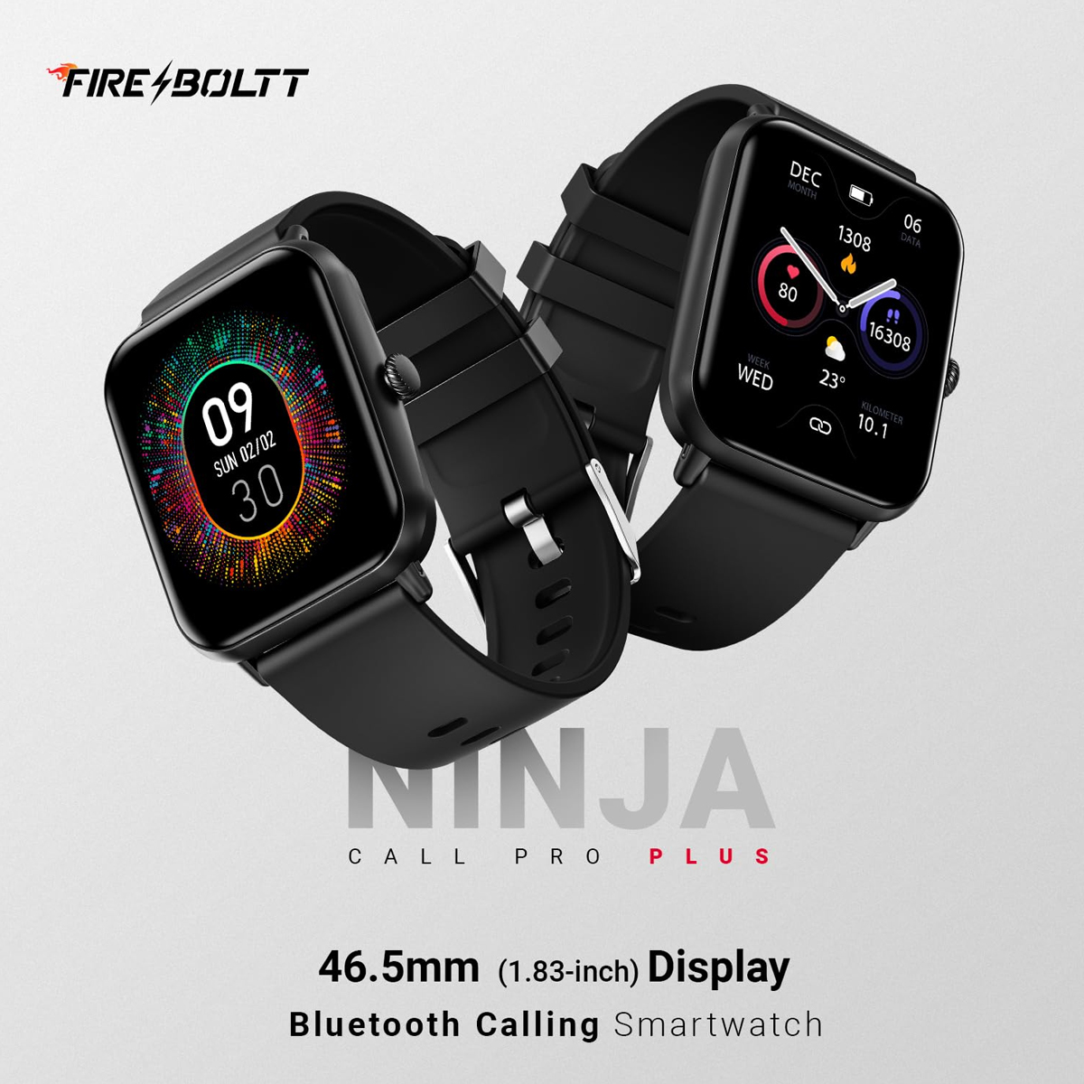Fire-Boltt Ninja Call Pro Plus Smart Watch 1.83” HD Display, Bluetooth Calling, AI Voice Assistant, 100 Sports Modes, IP67 Waterproof, SpO2 Monitor, Smart Watch for Man & Woman- Black