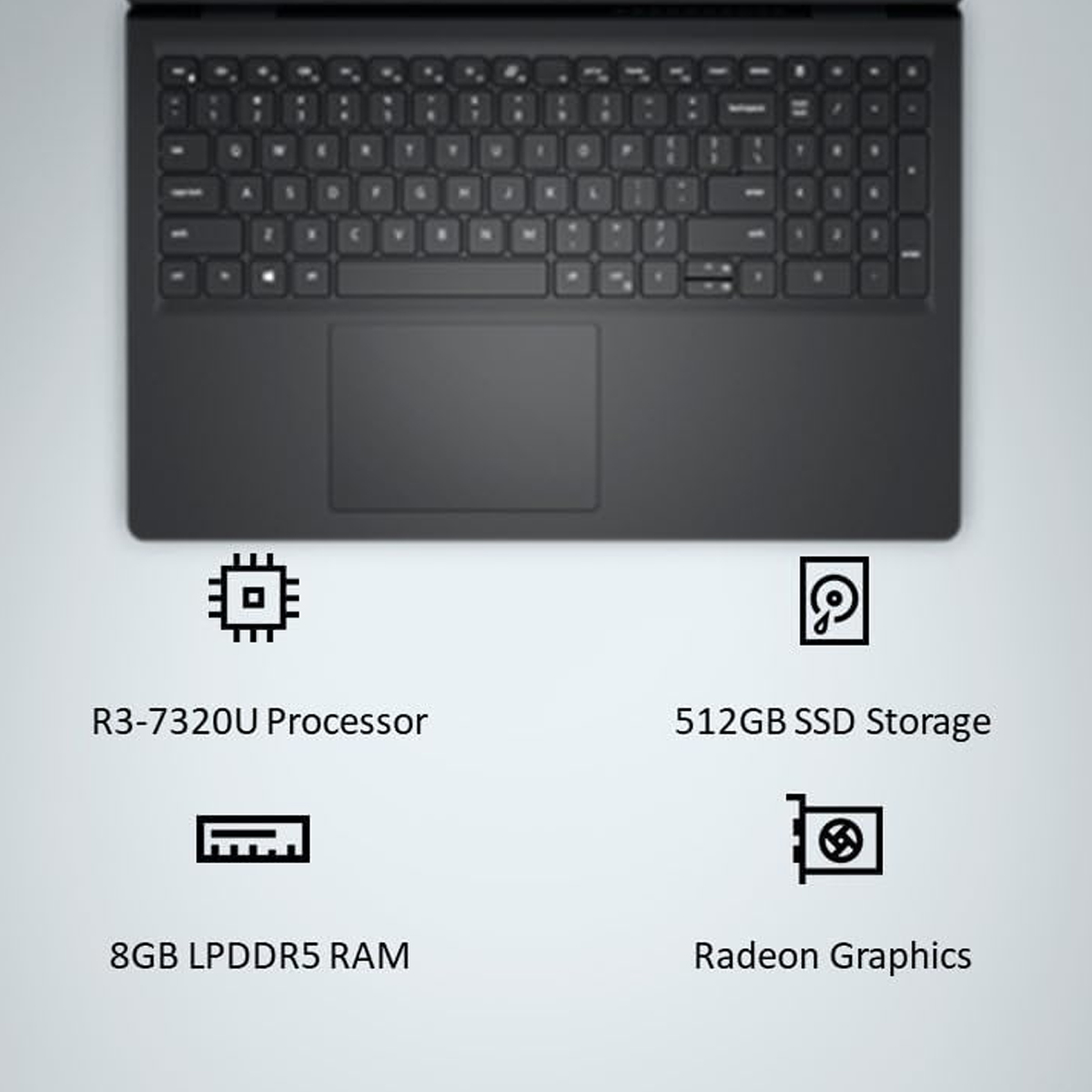 Dell 15, AMD Ryzen 3 7320U Processor (8GB RAM / 512GB SSD/Windows 11 + Office H&S 2024 + M365 / 15.6″(39.62 Cm) FHD Display / 12 Month Mcafee/Carbon Black Color/ 1.63 Kg Thin & Light Laptop